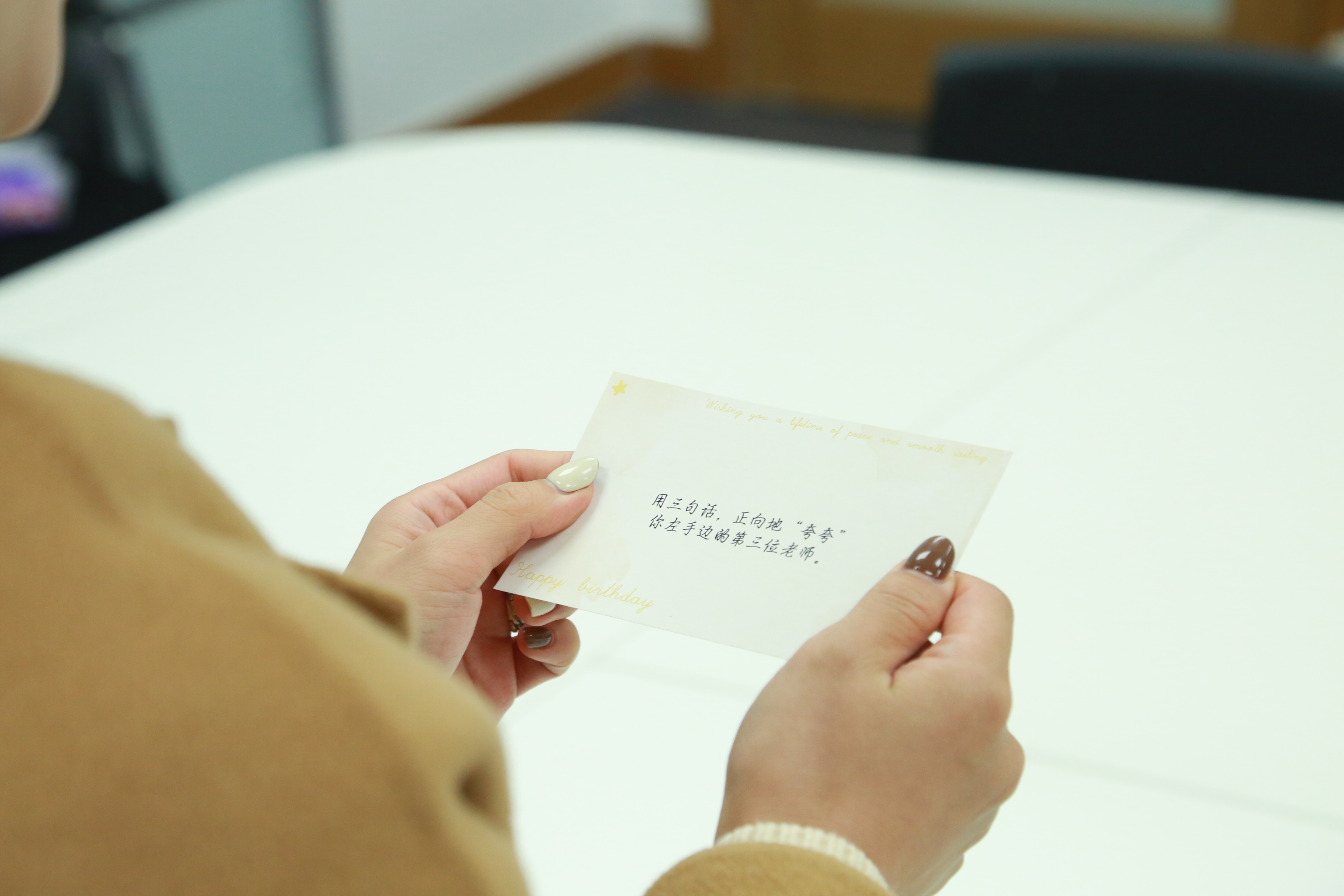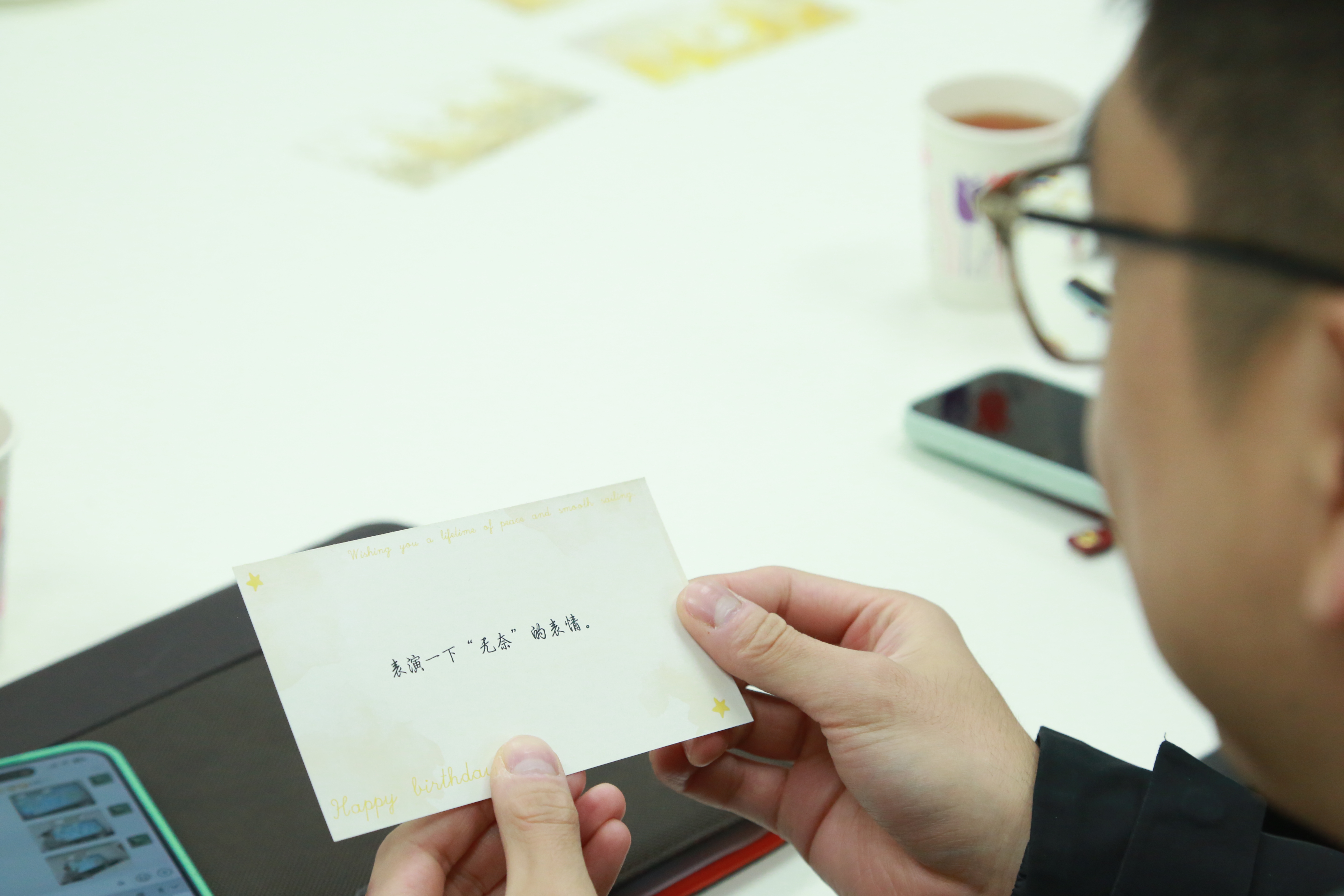 公司为寿星准备了丁奇教授书写的精美福笺,表达了对老师们事业与生活的美好祝愿。一纸福笺,不仅是一份礼物,更是一份暖心的纪念。