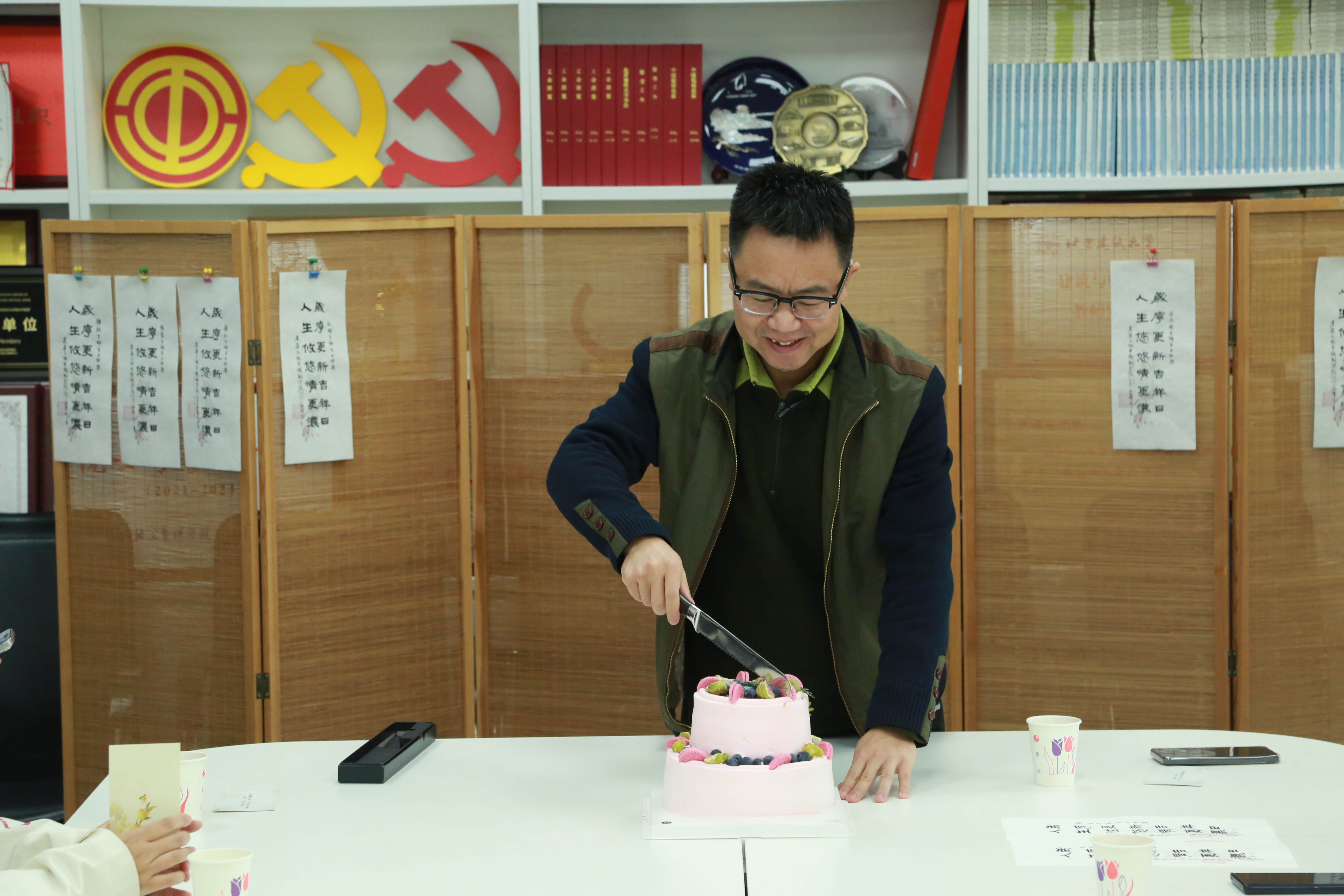 寿星代表刘剑锋老师为大家切分了寓意美好的生日蛋糕。老师们围坐一堂,品尝着甜美的蛋糕,畅谈着工作与生活的点滴,欢声笑语不绝于耳,现场洋溢着家一般的温暖与欢乐。