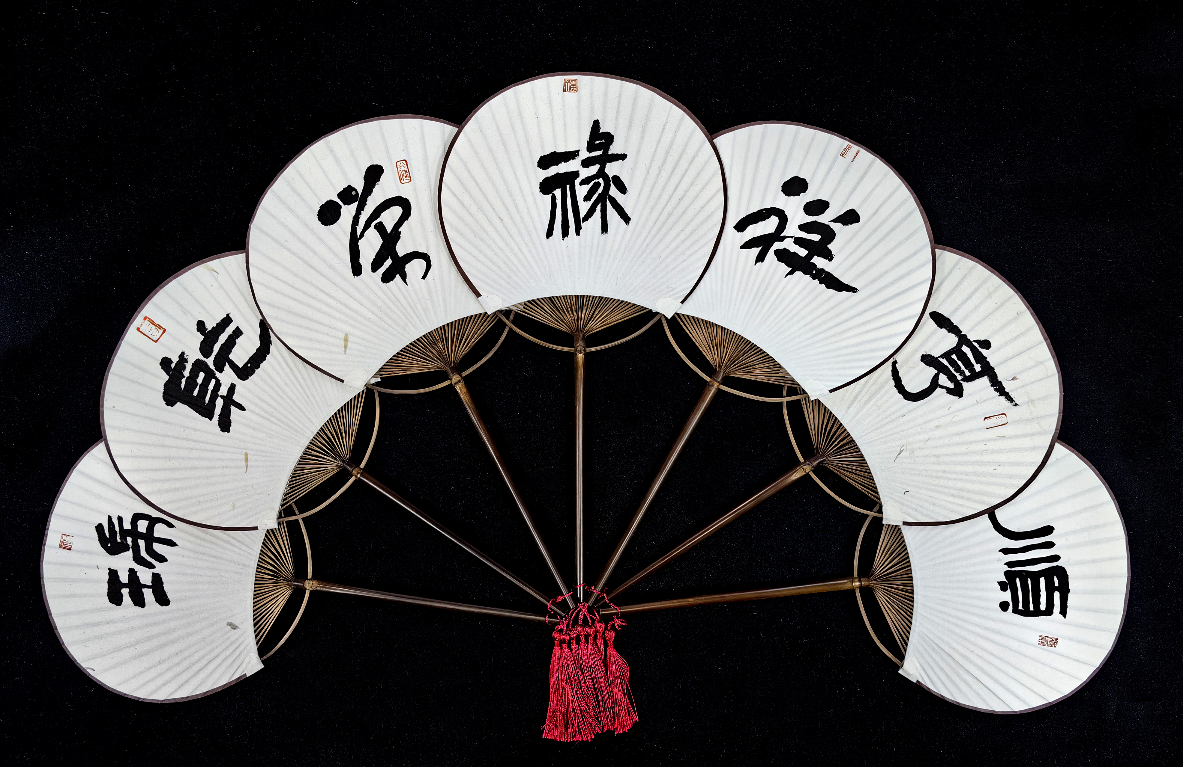 最后,进入本场生日会特别环节——“我的上上签”活动。团扇在中国传统文化中象征着团圆、祝福和美好。《易经》中的文字,则蕴含了深刻的哲理和吉祥的寓意。活动选取《易经》中的吉祥字书写在扇面上形成签文,通过团扇抽签的方式,抽取专属于寿星每个人新一年、新一岁的美好祝福。