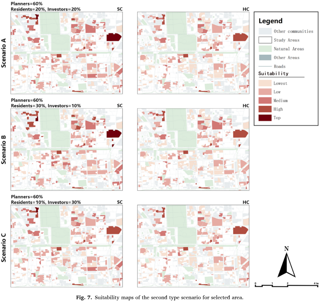 Suitability maps of the second type scenario for selected area.