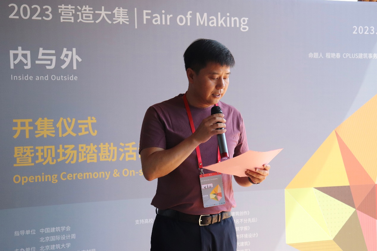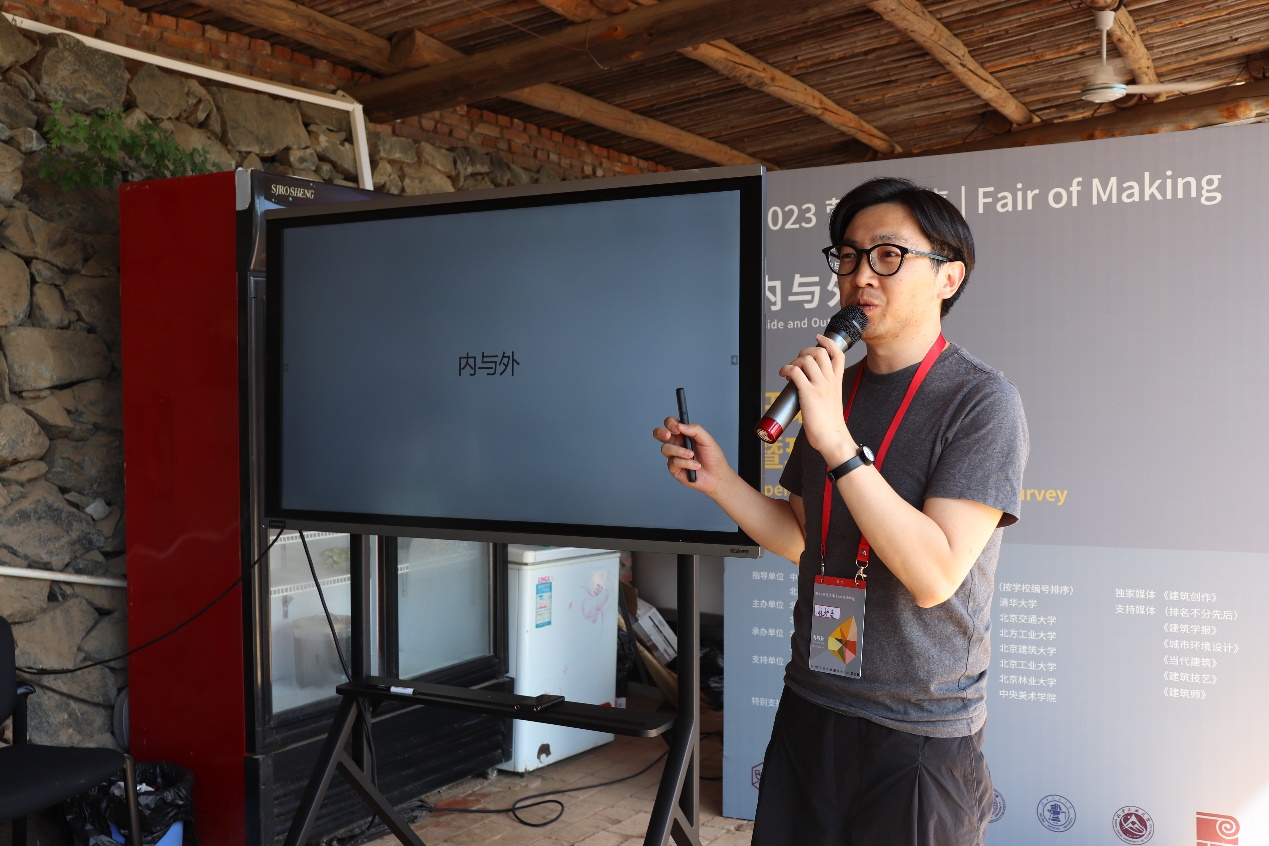 “2023营造大集”出题人、mkmksport教师、CPLUS建筑设计事务所的主持建筑师程艳春宣布了本期的营造主题——“内与外”,他对题目进行了深度解析并提出设计任务与要求。他认为作为物质的建筑本体处在内外之间,不同文化背景下的“外”有着不同的表达,设计的本质是构建各种关系。中国传统“内与外”互为依存,缺一不可,这为现代建筑设计提供了另一种思考。