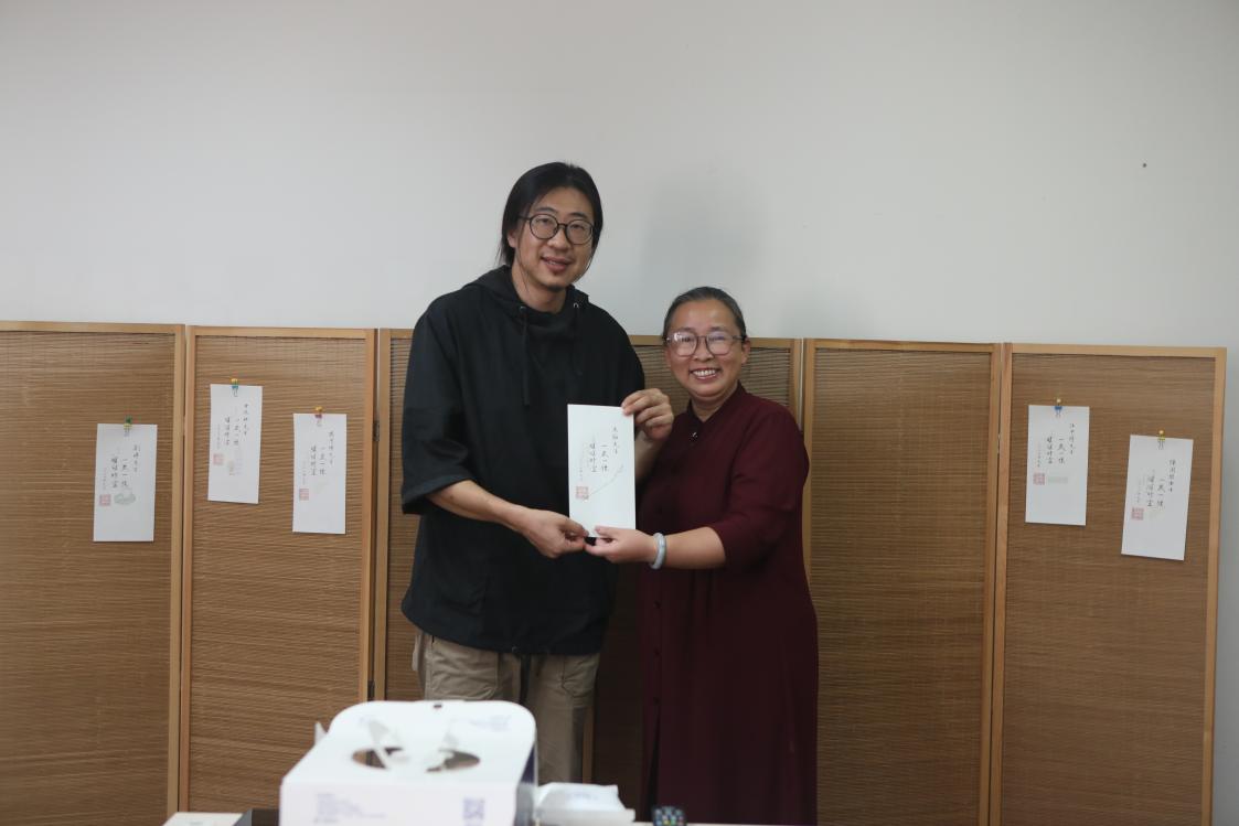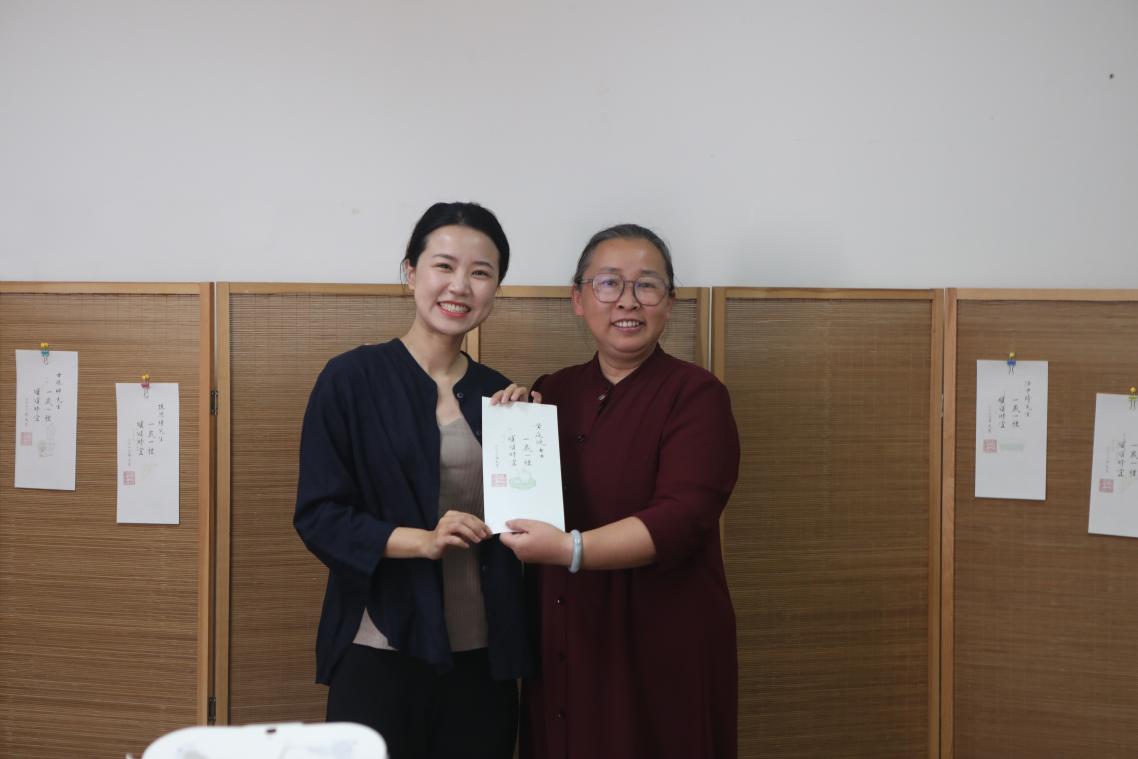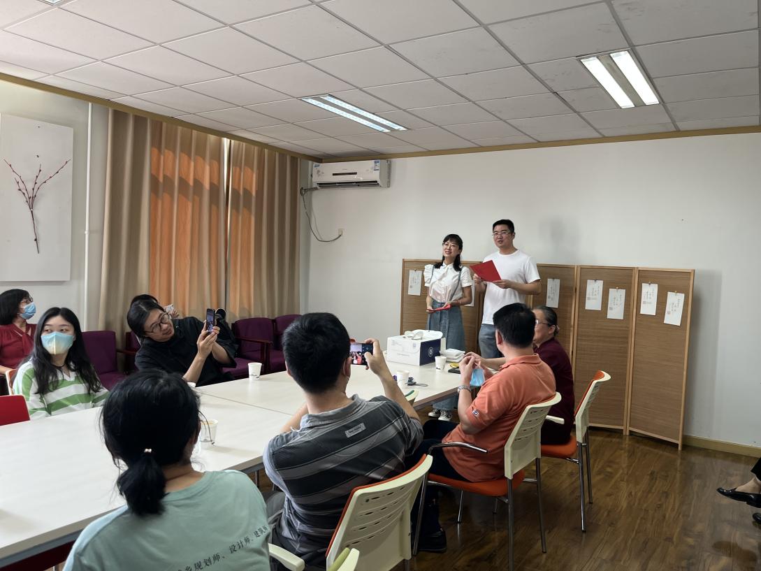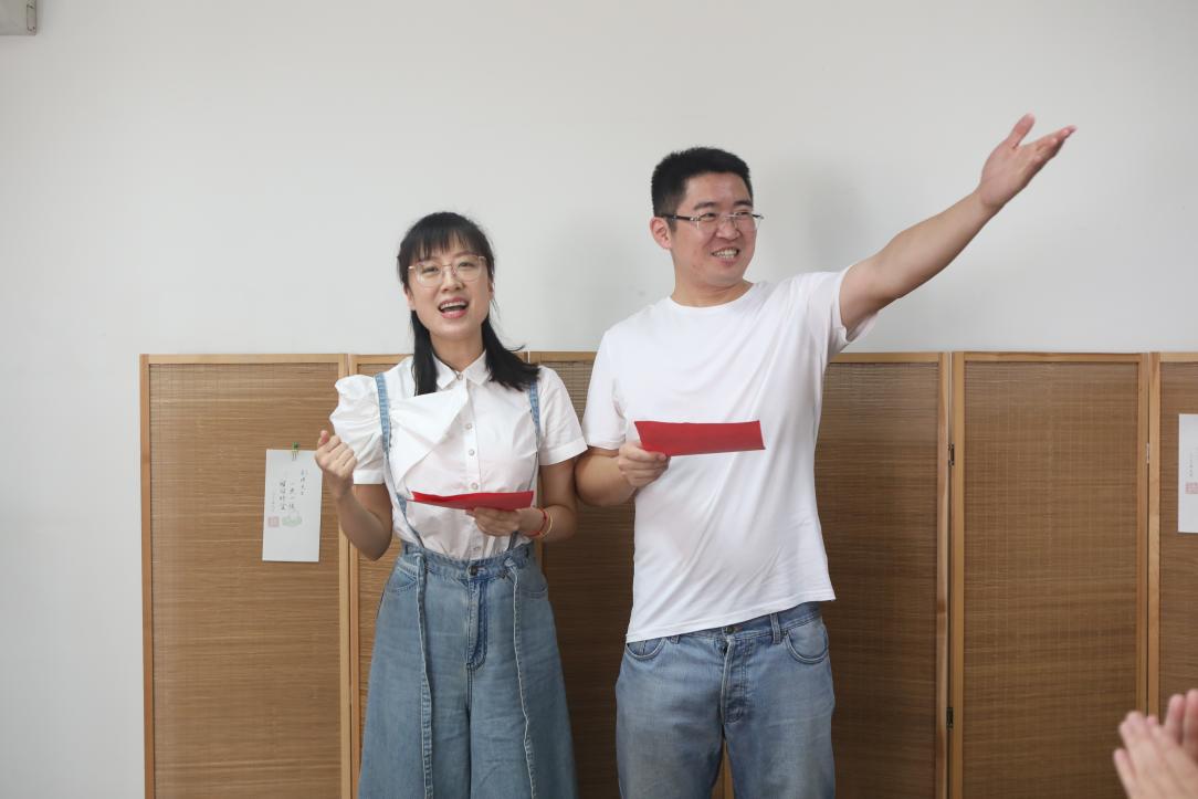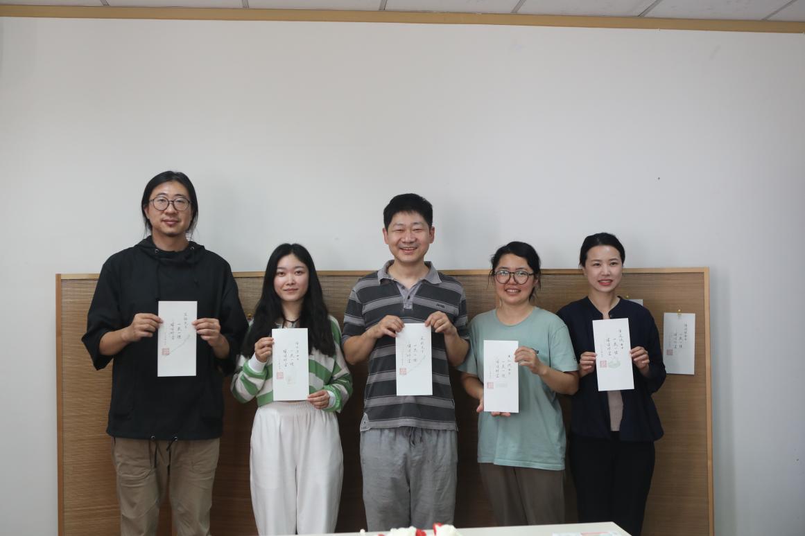 在颁发贺卡环节,欧阳文老师走上台来,为老师们一一送出贺卡、送上祝福。特别要说明的是,生日贺卡所用纸张是由何立新老师挑选的清秘阁笺纸,其上书法“一岁一礼、顺颂时宜”由公司退休教师李沙教授亲笔书写,落款的公司印章则由杨振老师精心刻制。“咔嚓、咔嚓”,随着快门的按动,镜头记录下这一幕幕精彩又温馨的瞬间。