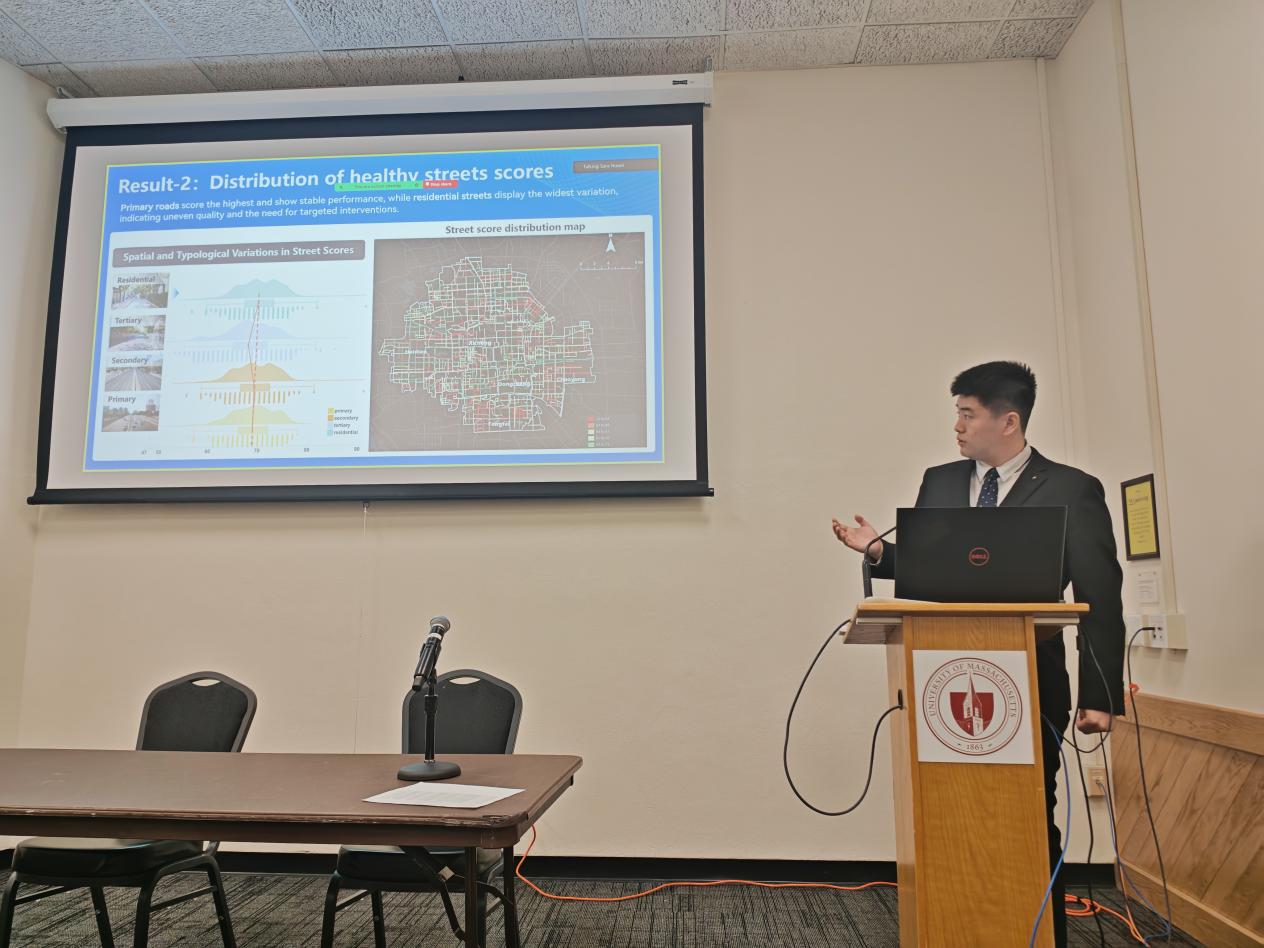 会议共设7个分论坛,在丁奇教授的指导下,田雨泽博士在“Urban and Community Parks”分论坛进行了口头报告,报告题目为“Research on the Evaluation andStrategy of Streets in the Central UrbanDistricts of Beijing from the Perspective of the Healthy Streets”,聚焦于北京中心地区城市街道的健康影响评估,量化分析街道问题并探讨成因与策略。研究采用改良后的伦敦健康街道方法,对各类街道进行调研和评分,比较不同行政区街道的得分差异及其原因。研究总结了北京街道在基础功能和休闲体验方面的优势与不足,并从政策导向和综合治理层面分析街道问题的深层次成因,提出相应的更新措施,为其他大型城市街道健康评估研究提供参考。在孙喆副教授指导下,研究生郑璐在“Ecological and Environmental Design”分论坛做题为‘Risk Assessment of Mountain Road Networks Induced by Extreme Rainfall-Triggered Geological DisastersA Case Study of Mentougou District, Beijing’的报告。聚焦于极端降雨引发的地质灾害对北京市门头沟区山区道路网络的风险性评估,采用随机森林模型、复杂网络理论和熵权TOPSIS法,评估道路的危险性、脆弱性和暴露度。通过综合评估,研究为灾害应急响应、路网优化和地质灾害防治提供了科学依据。两位同学顺利完成报告发言并回答现场提问,与各国参会人员进行了深入的学术交流与讨论。