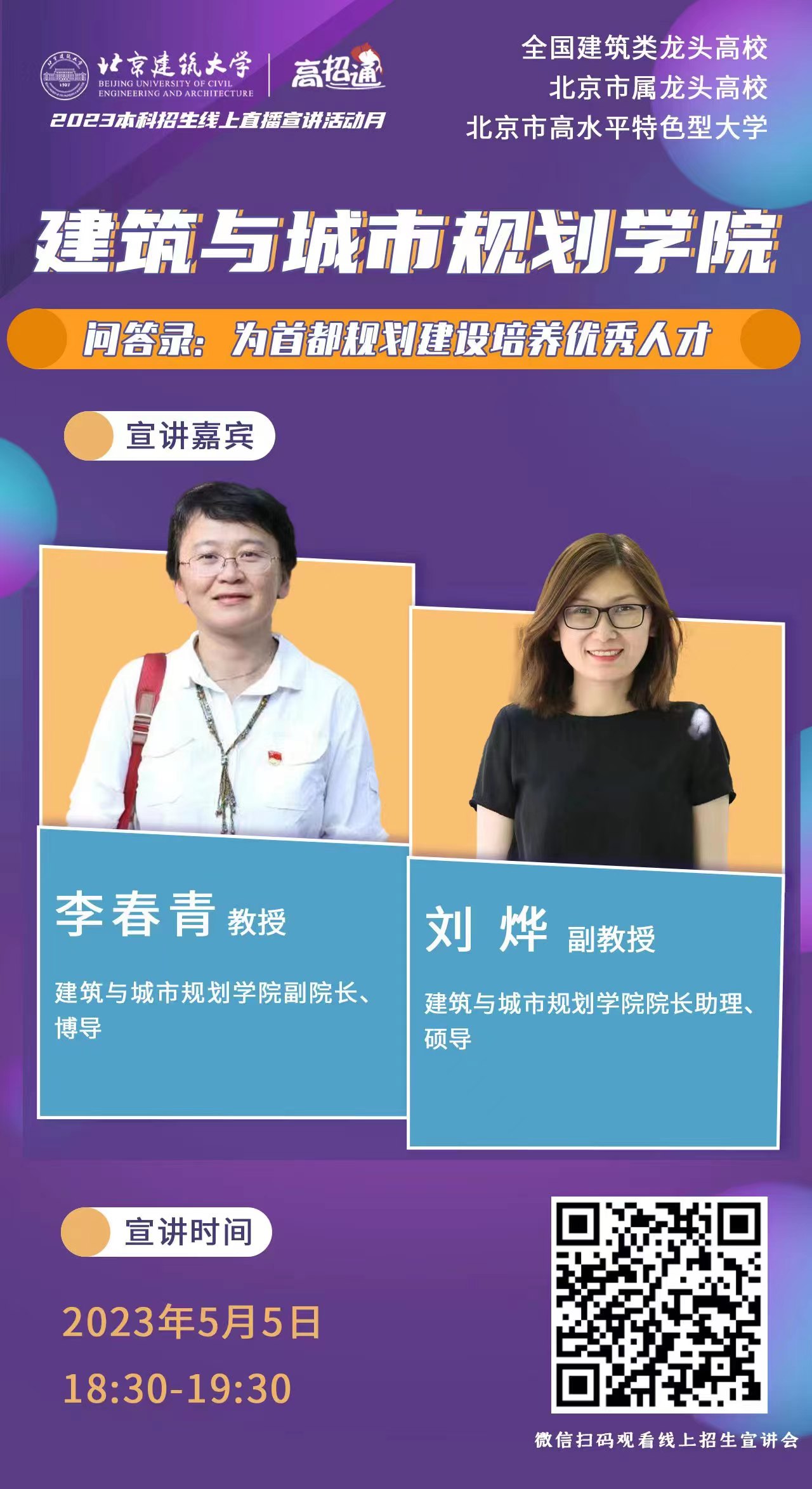 5月5日至15日,公司招生办公室陆续进行线上专业讲解,mk体育李春青、郝晓赛、刘烨、荣玥芳、李梦一欣、王兵、朱宁克7名教师参加线上专业宣讲工作。他们将分别介绍mk体育建筑学、城乡规划、风景园林、历史建筑保护工程、环境设计的专业背景、特色、发展、以及近年员工录取、就业等多方面的内容。