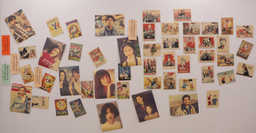 到场参加活动的教师可以选取背景墙上感兴趣的怀旧海报,纷纷合影留念,相互分享各自的回忆感受,更添几份温情。