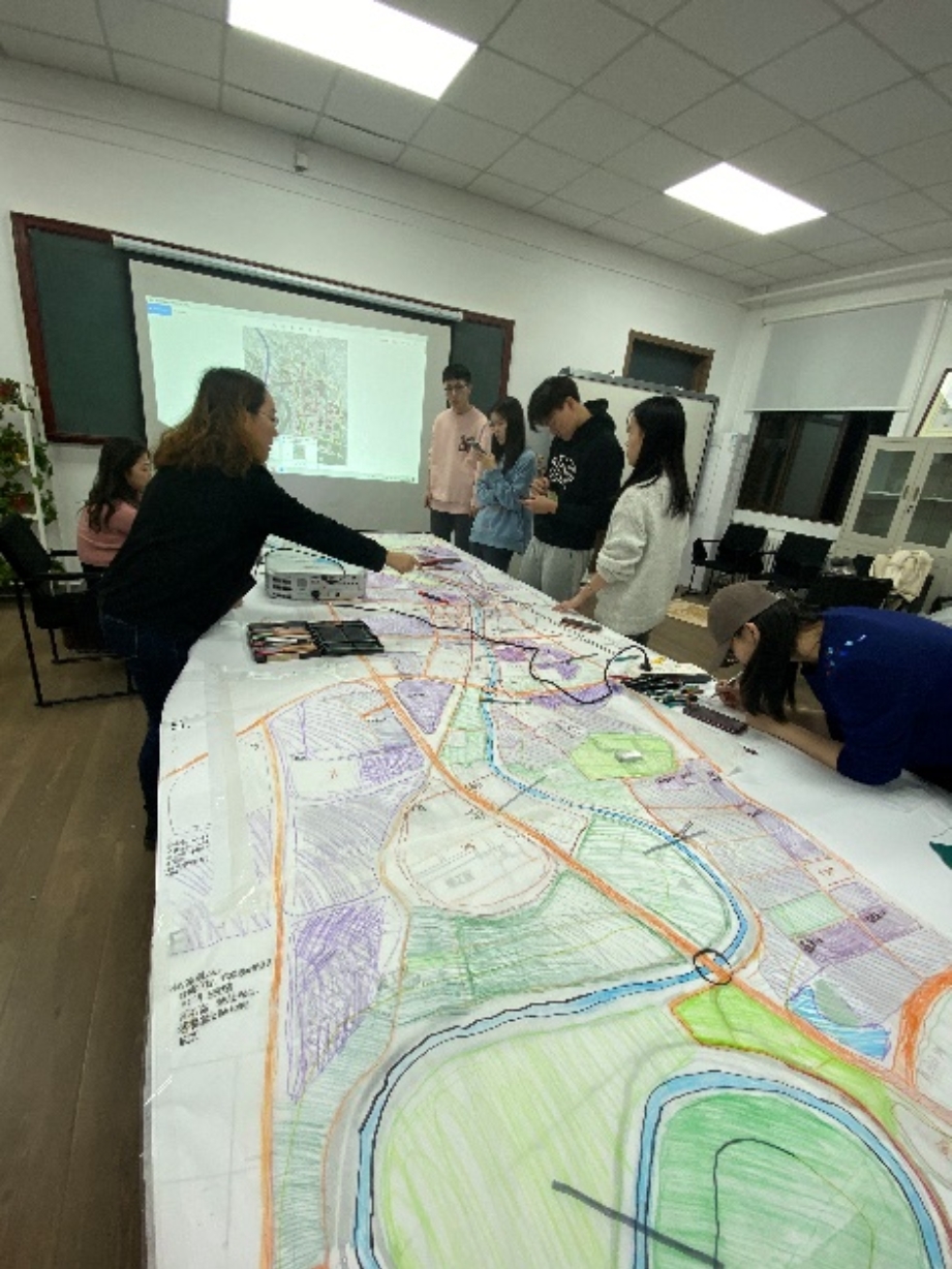 作品名称:孟璠磊老师在和员工们演示空间尺度 |