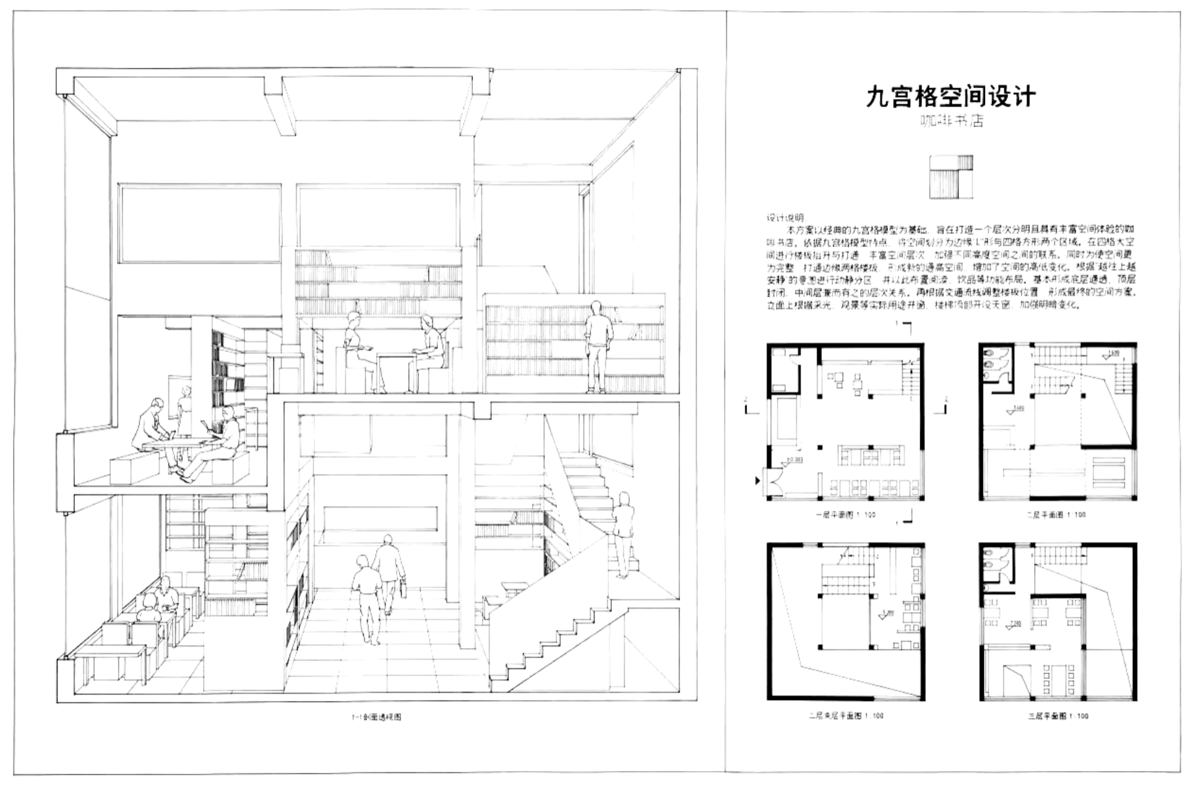 由于受到疫情影响的原因,九宫格课题设计时间被压缩,在持续5周、每周3节设计课程的高强度训练中,根据客观情况、结合线上授课特点,课题负责人李路阳为同学们引入了SketchUp软件。,在授课教师的指导下,员工借助软件,完成经典案例-海杜克得克萨斯七号住宅和咖啡书店实际运营场所的功能-空间研究。并在课程中,将设计中建模的大量空间、家具信息,结合手绘的方式,用于最终的设计表达。