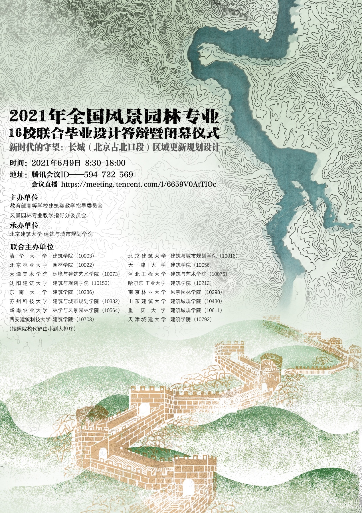 本次联合毕业设计选题为“长城(北京古北口段)区域更新规划设计”:长城(北京古北口段)区域更新规划设计,聚焦于“区域更新与民生福祉”、“文化遗产保护与传承”以及“生态涵养与修复”等关键词,旨在通过这一具有丰富文化内涵的规划设计对象,展示各参与高校的人才培养优势与特色,在长城研究课题上贡献全国16所风景园林专业高校的集体智慧。