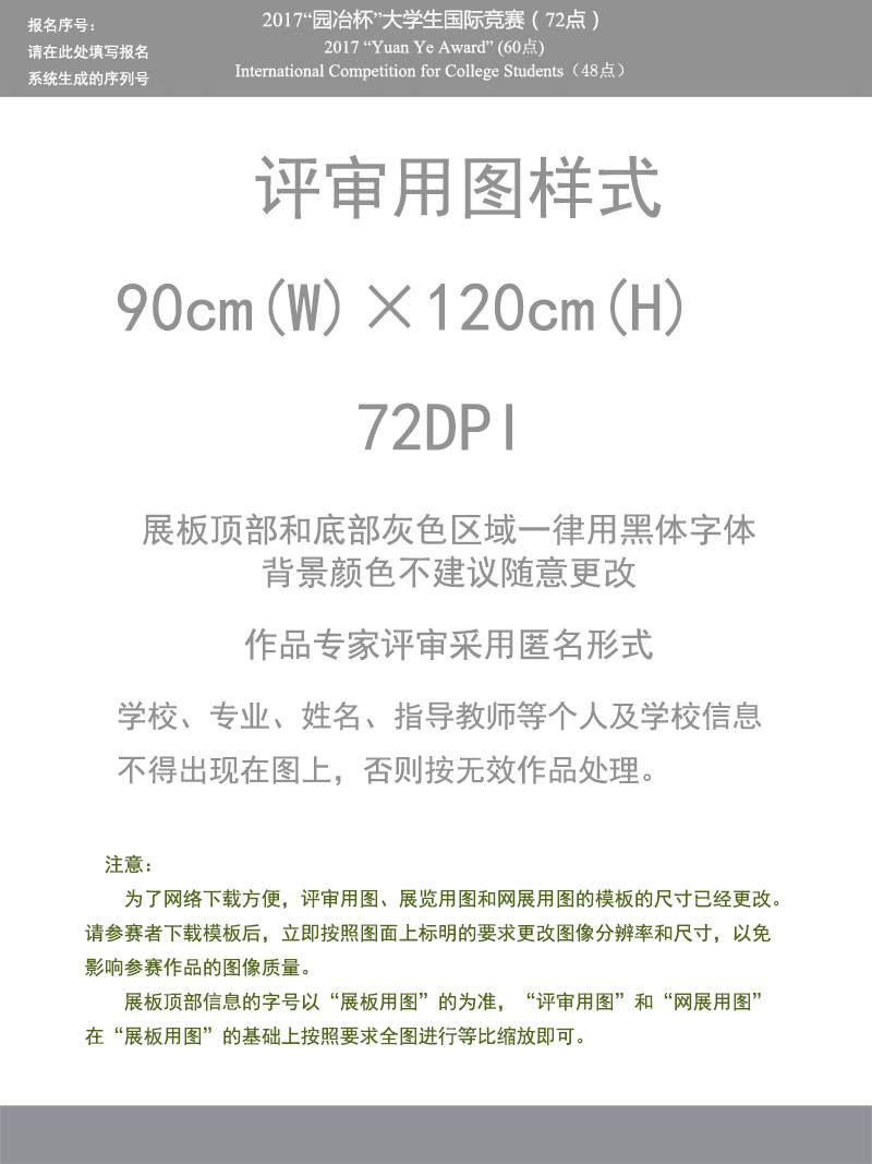 根据组委会的评审要求,展板顶部和底部灰色区域一律用黑体字体,背景颜色不建议随意更改。作品专家评审采用匿名形式,公司、专业、姓名、指导教师等个人及公司信息不得出现在图上,否则按无效作品处理。
