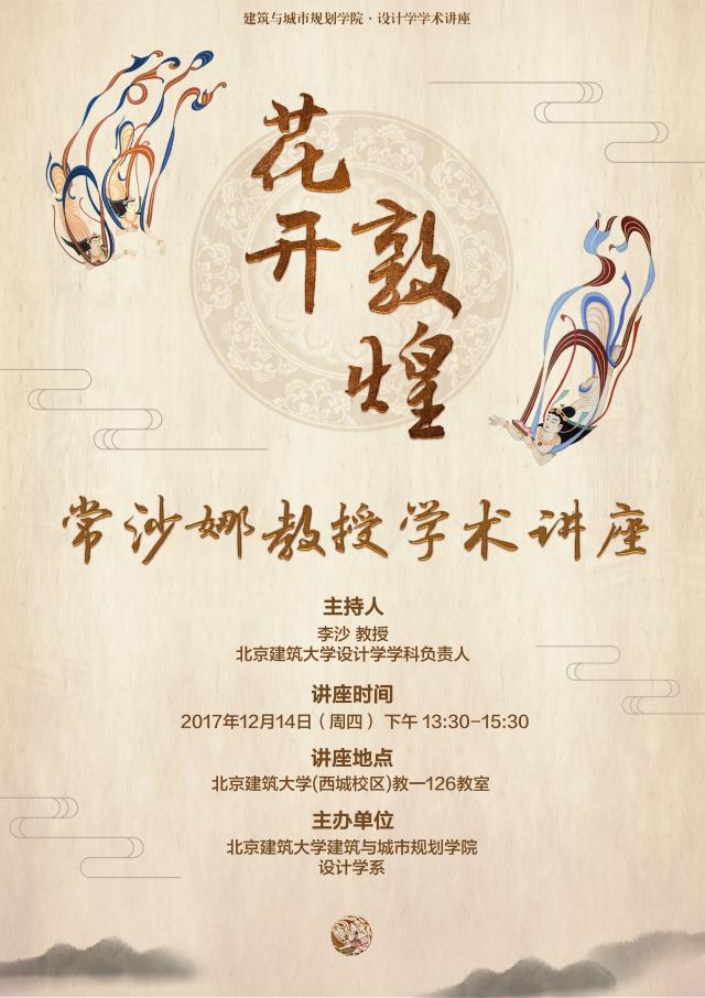 本次讲座常沙娜教授将展示敦煌在世界艺术史上的地位,以及它对现代设计学的影响。