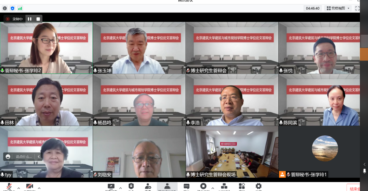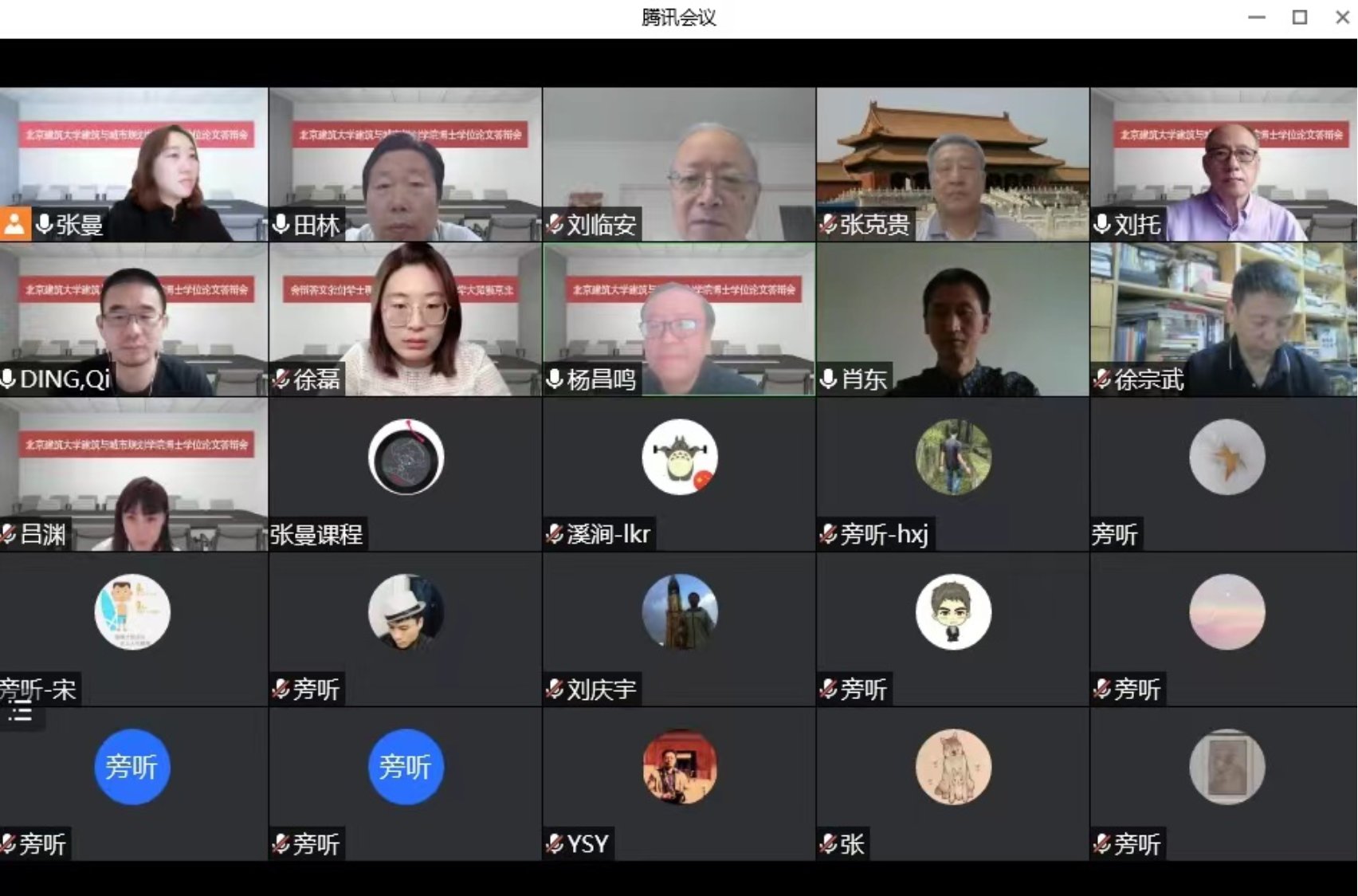 6月9日-6月10日,公司mk体育2022届博士研究生顺利举办2场学位论文在线答辩会。2022年春季学期,mk体育共有周宇、黄庭晚、吕渊、徐磊4名博士研究生提出学位申请,导师分别为张大玉教授、陈同滨研究员、田林教授。天津大学张玉坤教授、北京工业大学杨昌明教授分别担任答辩主席,清华大学张悦教授、中国艺术研究员刘拓研究员、故宫博物院张克贵研究馆员,mkmksport汤羽扬教授、刘临安教授、李浩教授、丁奇教授、肖东教授、徐宗武教授等校内外专家担任答辩委员,mk体育张曼、张学玲担任答辩秘书,研究生院及mk体育相关人员对答辩会进行全过程监督与指导。