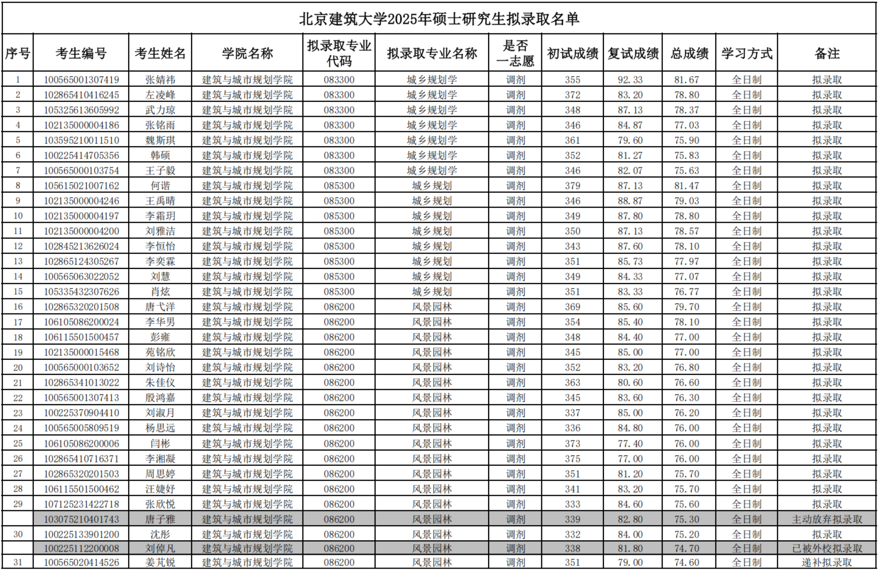 mk体育2025年硕士研究生拟录取名单(调剂)更新版