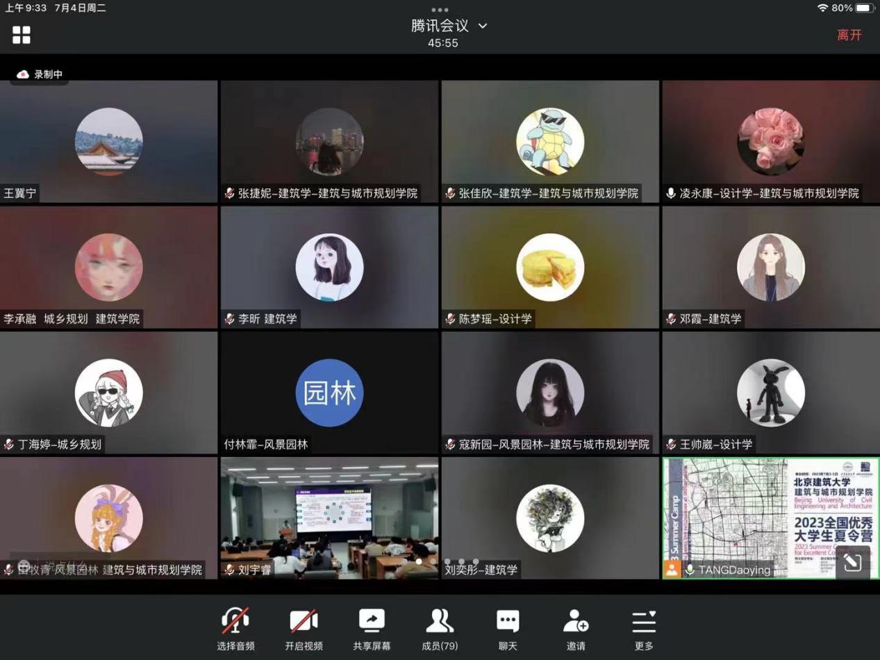 5日上午,建筑学、城乡规划、风景园林、设计学、建筑遗产保护5个学科专业共组成7个考核小组,分别由欧阳文教授、郝晓赛教授、杨一帆副教授、孙立教授、丁奇教授、傅凡教授、赵希岗教授担任组长,各学科骨干教师孟璠磊、商谦、铁雷、甘振坤、黄庭晚、张琳、王兵、马全宝、齐莹、贺鼎、陈志端、李勤、石炀、单彦名、张颖异、贾梦圆、刘玮、王婷、王如欣、顾月明、张学玲、徐海韵、王瑞琦、张笑楠、韩风、阚玉德、边谦等教师,线上线下同步开展夏令营考核工作,对营员的专业知识、综合素质、英语听说能力等进行全面考查。在考查过程中,营员们普遍表现出优异的综合素质和专业能力,以及对于北建大mk体育的关注。考核小组教师也以高度的热情与营员开展学术交流切磋。经过考核,共选拔出40名营员授予“优秀营员”称号。
